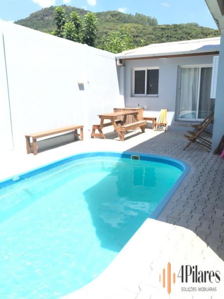 Excelente casa localizada em Muçum disponível para venda! Conta com duas moradias, uma delas com 2 quartos, sala, cozinha, área de serviço. A área inferior com quarto, sala e cozinha e acesso para a piscina. Garagem para 2 carros e amplo pátio!