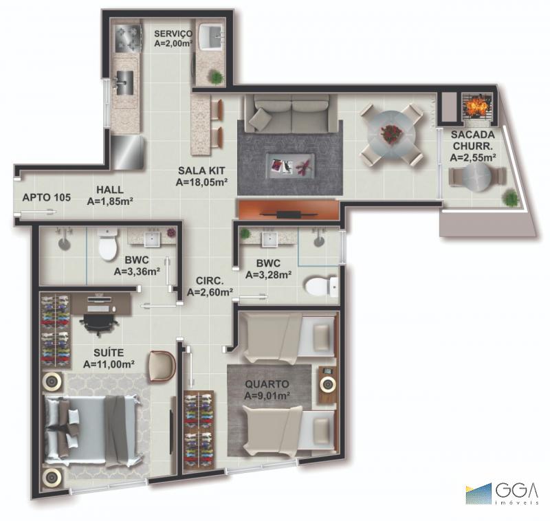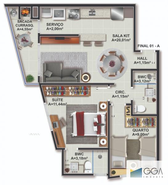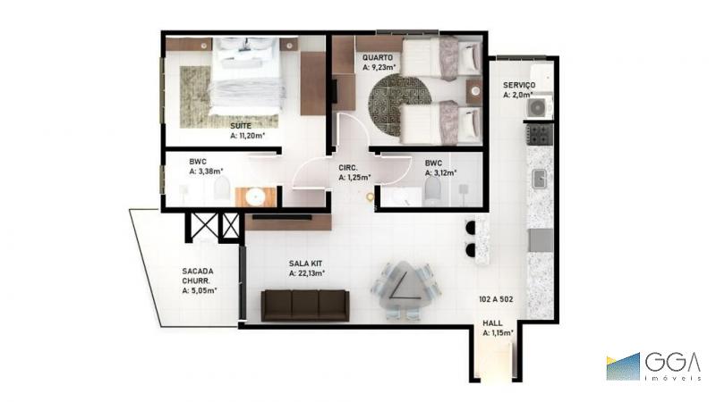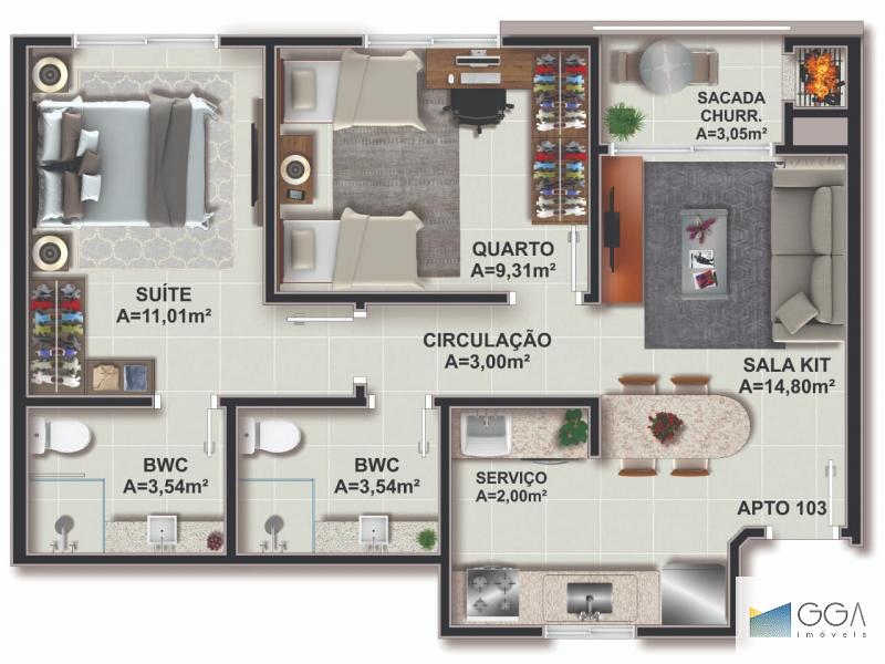 Área Privativa: 56.00 m²