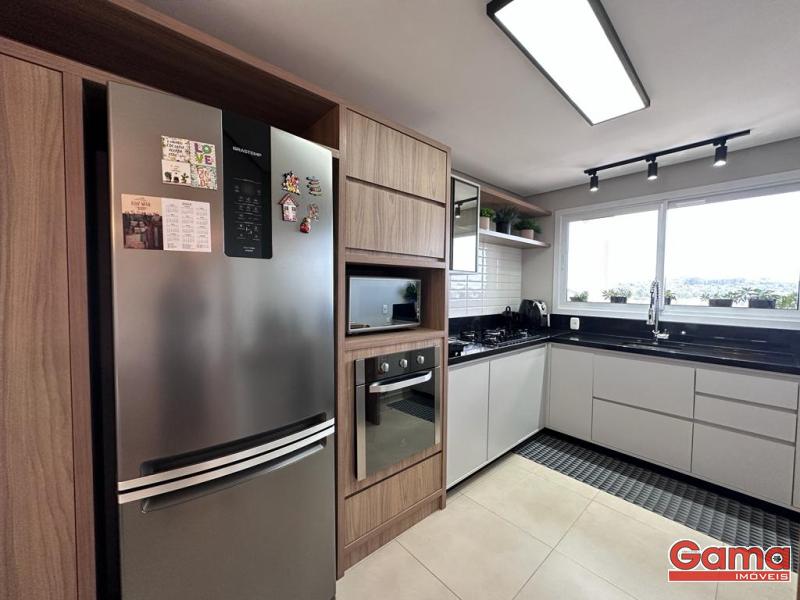 A cozinha, projetada com detalhes meticulosos, se integra harmoniosamente com a sala de jantar, criando um ambiente perfeito para refeições memoráveis em família. A área de serviço separada proporciona praticidade e organização.