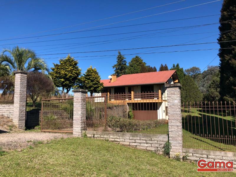 O imóvel possui uma arquitetura diferenciada, na parte superior conta com 3 dormitórios (sendo um suíte), sala de estar, cozinha, lavanderia independente. Na parte inferir vaga para dois carros, Todos os cômodos amplos, uma casa diferenciada! Possui um terreno de 5.000 m² todo cercado, com jardim e pátio ao redor de toda a casa, além de árvores frutíferas.